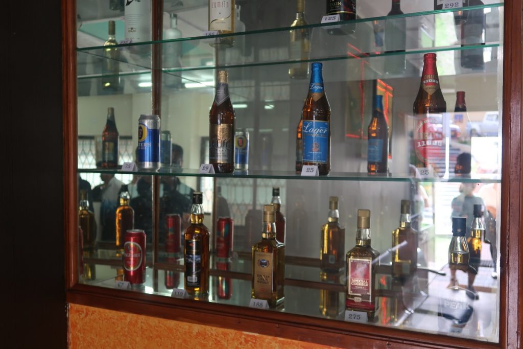 「スピリッツ」(厳密には蒸溜酒を指します)と書かれたドアを開けた先にあるのは、蒸留酒に限らずウイスキー、ワイン、ウォッカ、ビールが陳列された小部屋。扱うお酒はまさかの9割ブータン産※1。インドのものはキングフィッシャー(ビール)しかありません。ビール以外のお酒のお値段は市場より50~100ヌルタム(約80~160円)程度安め。ただし一部は市場より若干高め。なぜでしょう。以下、料金をまとめました。