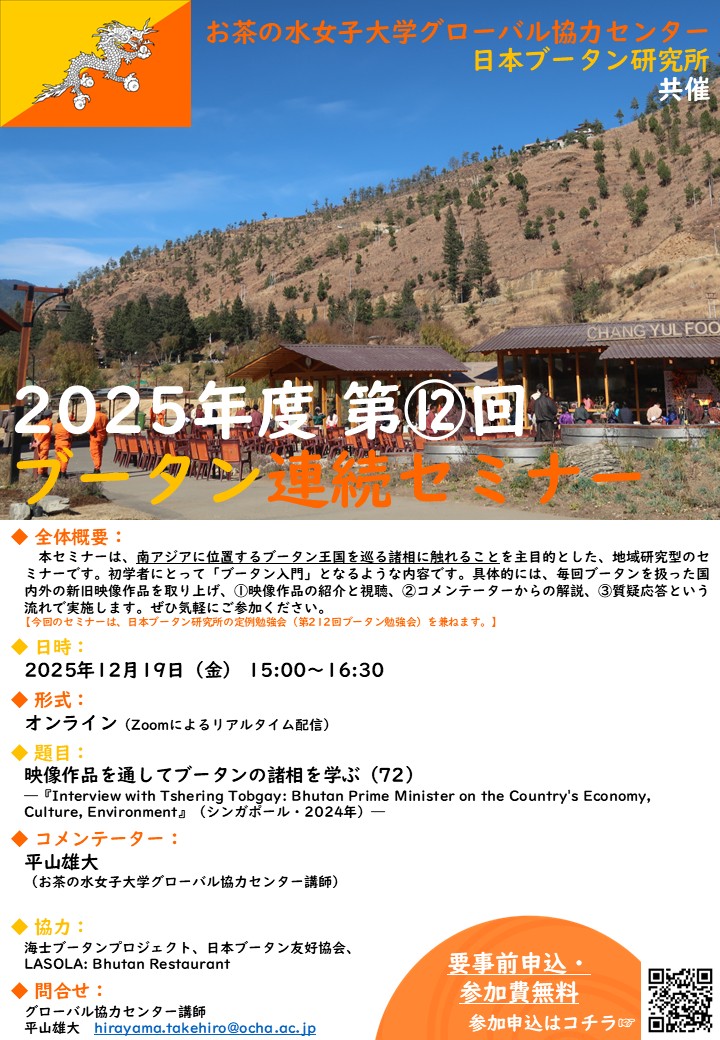 ※本勉強会は、日本ブータン研究所とお茶の水女子大学グローバル協力センターが共催する「2025年度第12回ブータン連続セミナー」として実施されました。